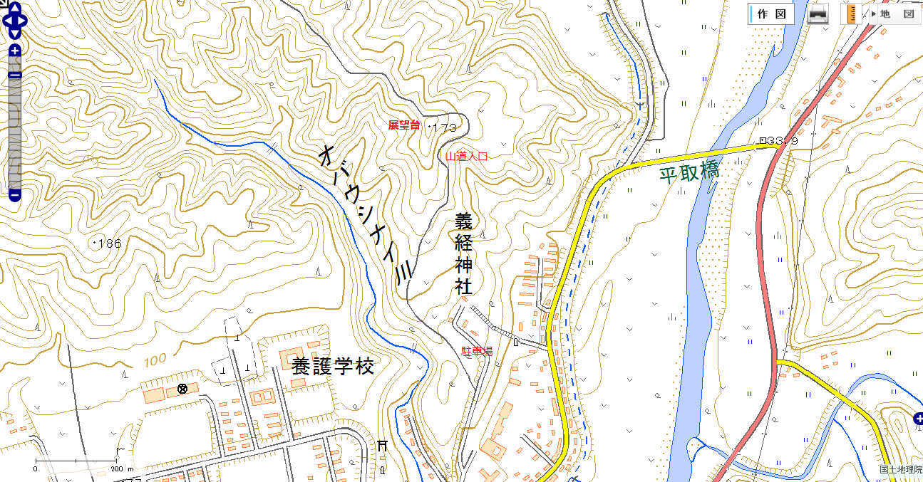 11時前に平取の町に着きました。義経神社があるから公園に入ります。展望台の案内があったから、車で行けるところまで砂利道を運転しました。遊歩道の入口に停めて歩きます。