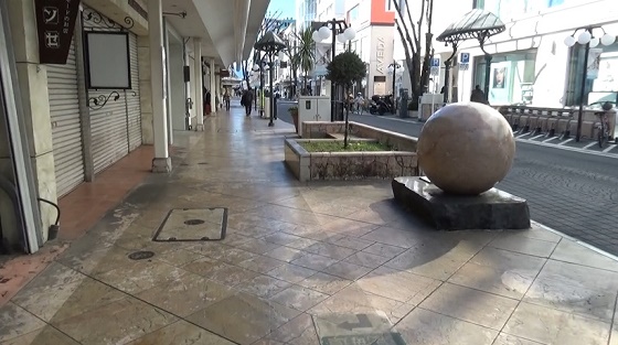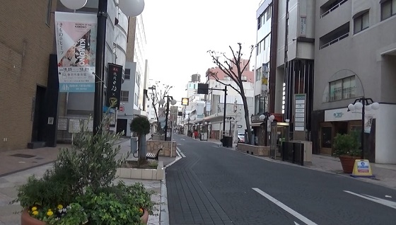 けっこうお店がある通り。そして災害警報が鳴りました。地震
