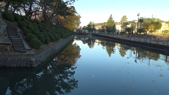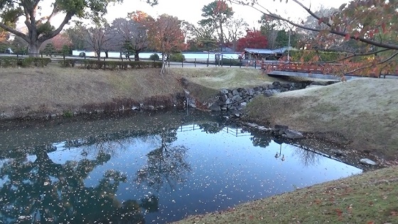 北御門から外へ。東側の内堀を見てから文化会館の横を通って