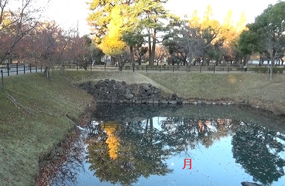 置。二の丸に水路があるのがおもしろい。水面に木や月が映って