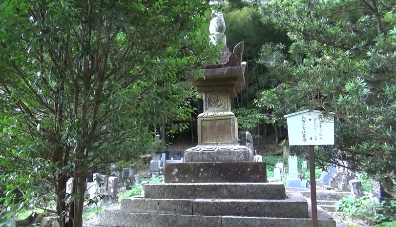 り。お万の方供養塔がありました。そして墓地の奥に山道発見。