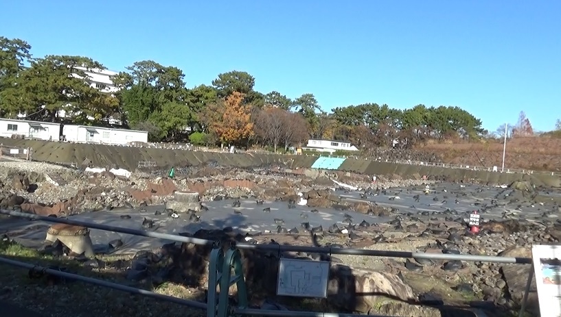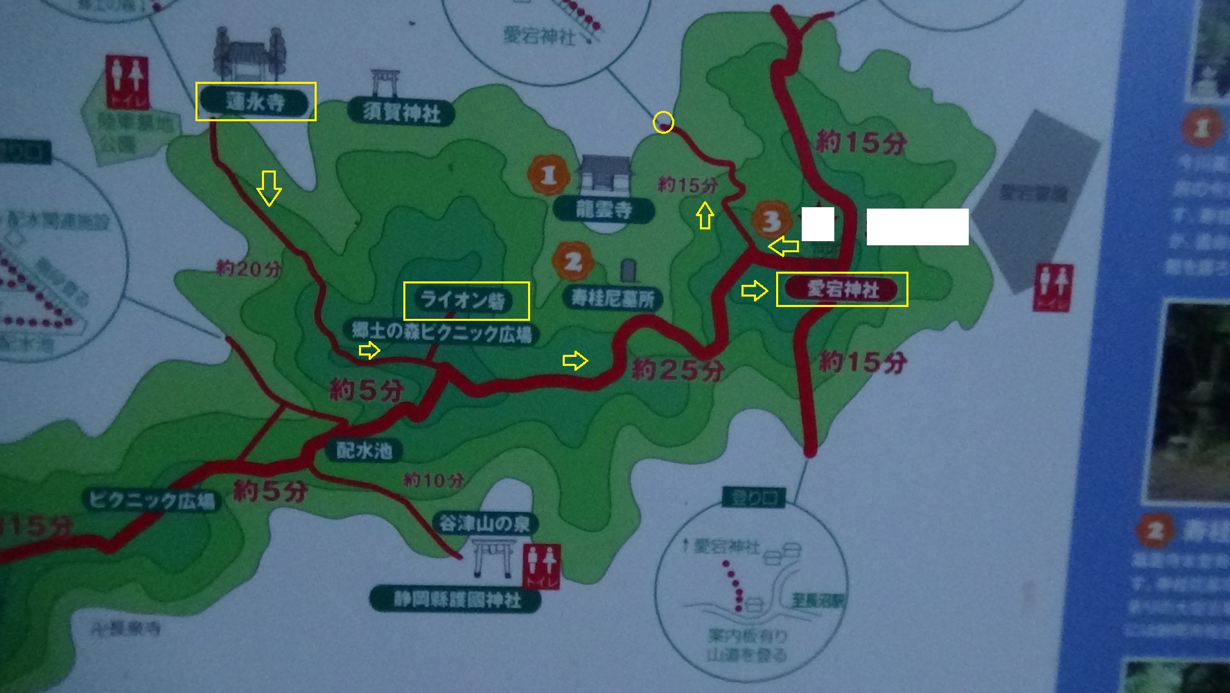 憩。防災訓練の案内スピーカーが流れています。もう少し上へ。