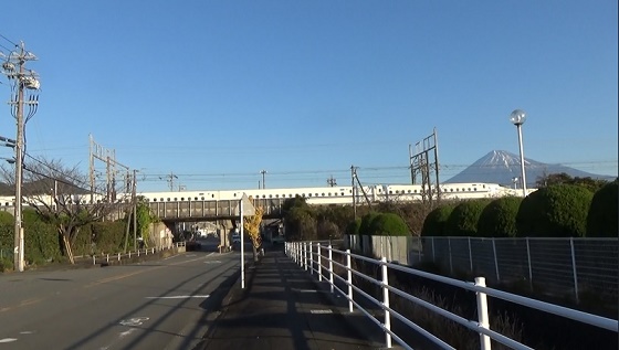 たまに富士山の頭が見えます。新幹線の高架をくぐりました。