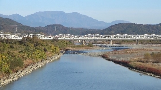 新富士川橋の歩道へ。上流側なので順光の北の景色を楽しみます。