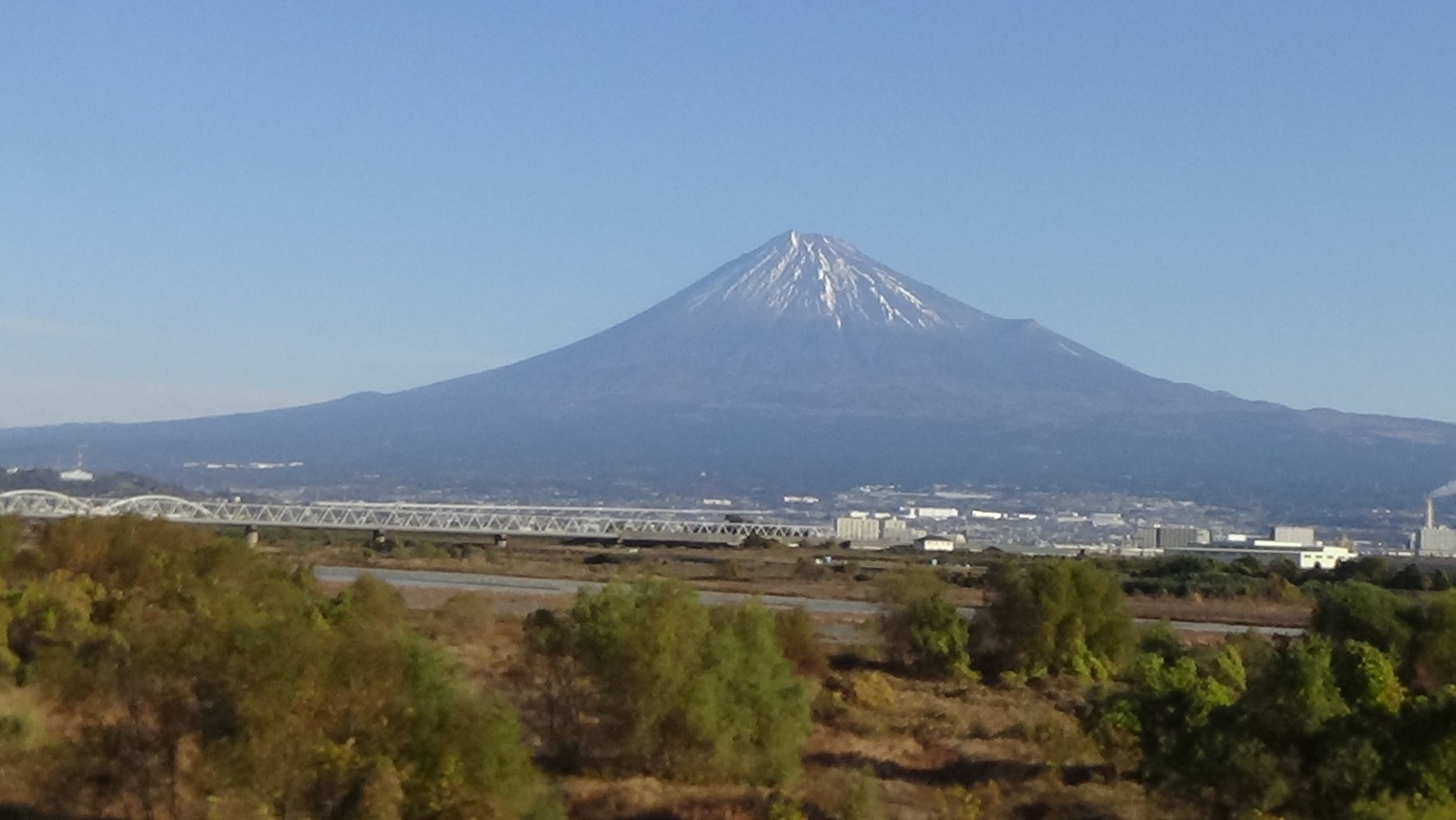 かいます。左窓から景色を眺めました。まだ富士山が見える所ば