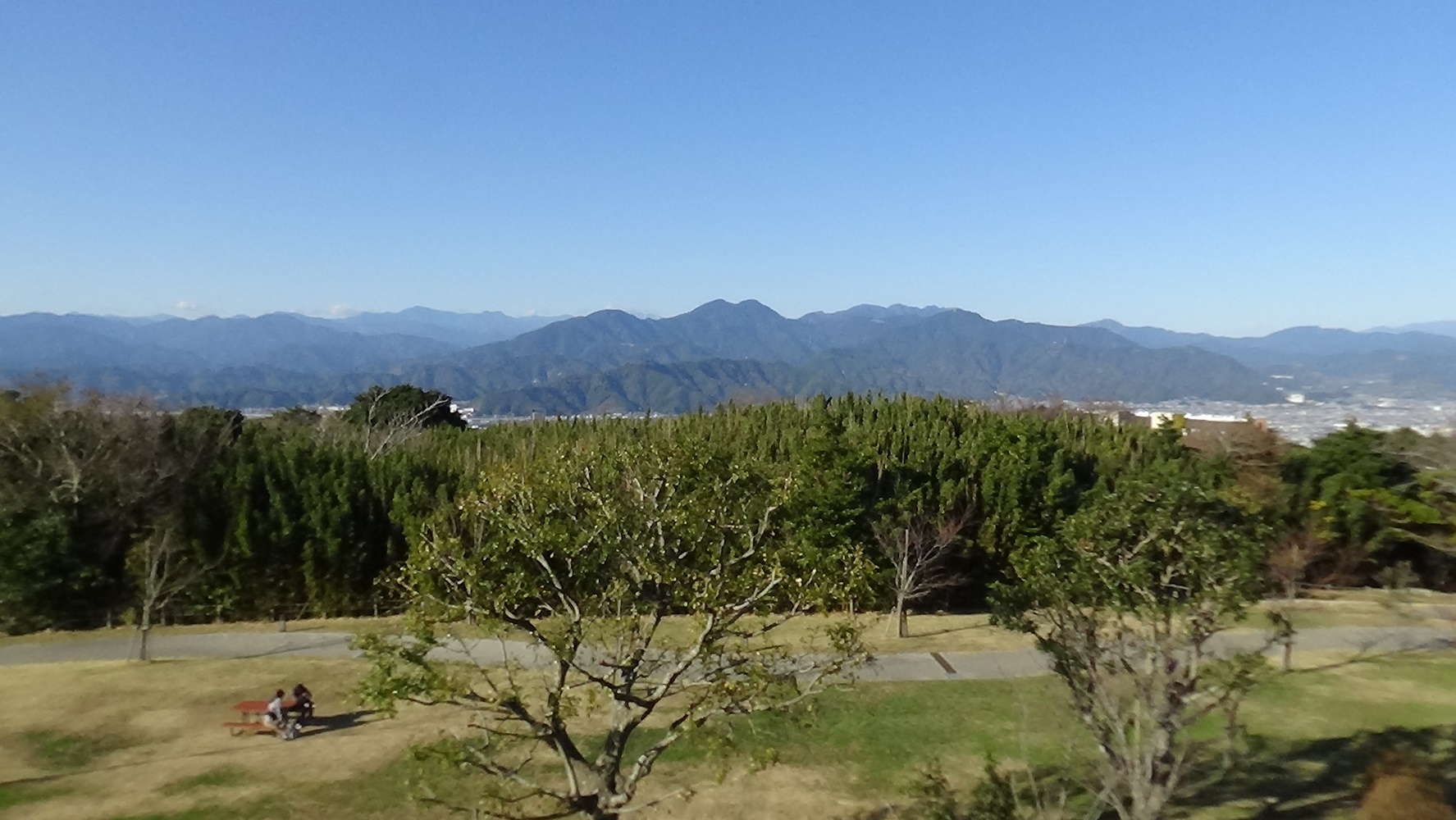 事をしていました。伊豆半島が見えています。振り返れば久能山