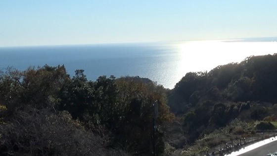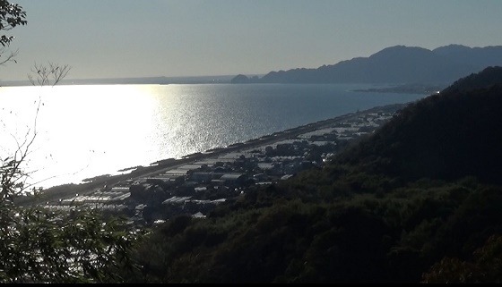次は駿河湾の方です。さらに太陽がまぶしい、海が光ってます。