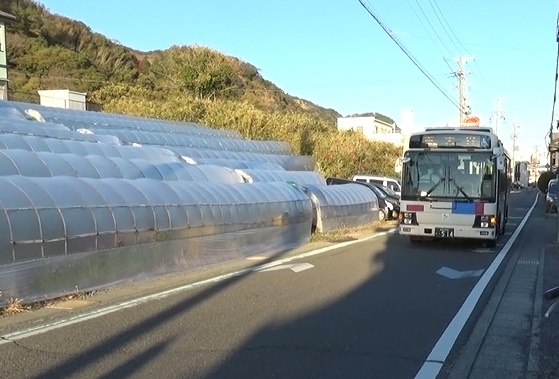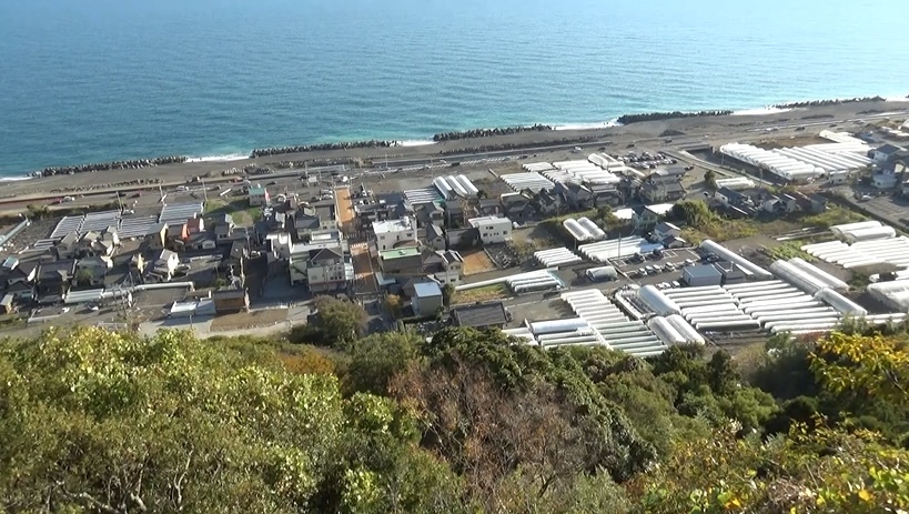 太平洋の海岸を眺めながら下ります。ハウスがたくさんありま
