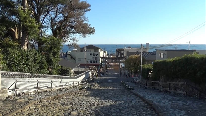 した。イチゴを栽培しているそうです。海岸への参道が長い。ま