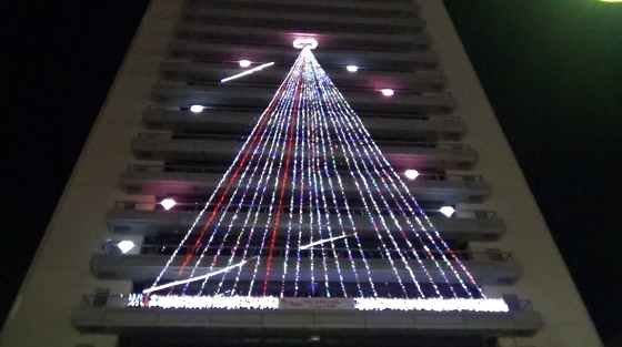 が続きます。反対側には露店もありました。ビルにツリーの光。