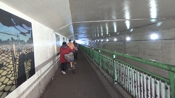 タート。さて南口に行く道は??? 西側の地下道をくぐる遠回