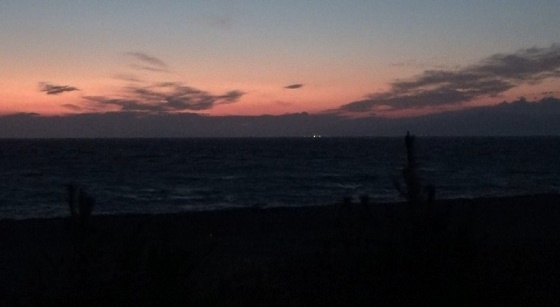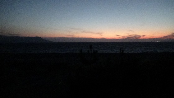 浜。暗くなりました。まだ夕焼けの赤色が少し見えます。 もう