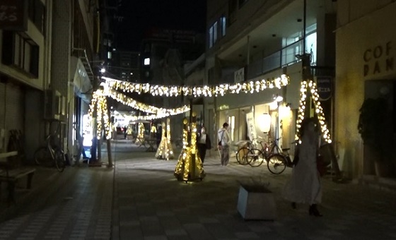 気になっていた電飾だけど、点灯していたから、光のアートが楽