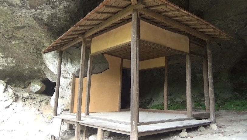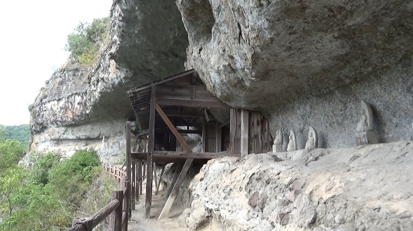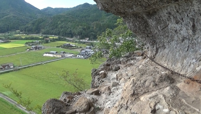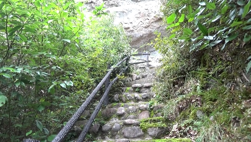 お堂から下りてハシゴへ。鎖がある崖を注意して進みます。安