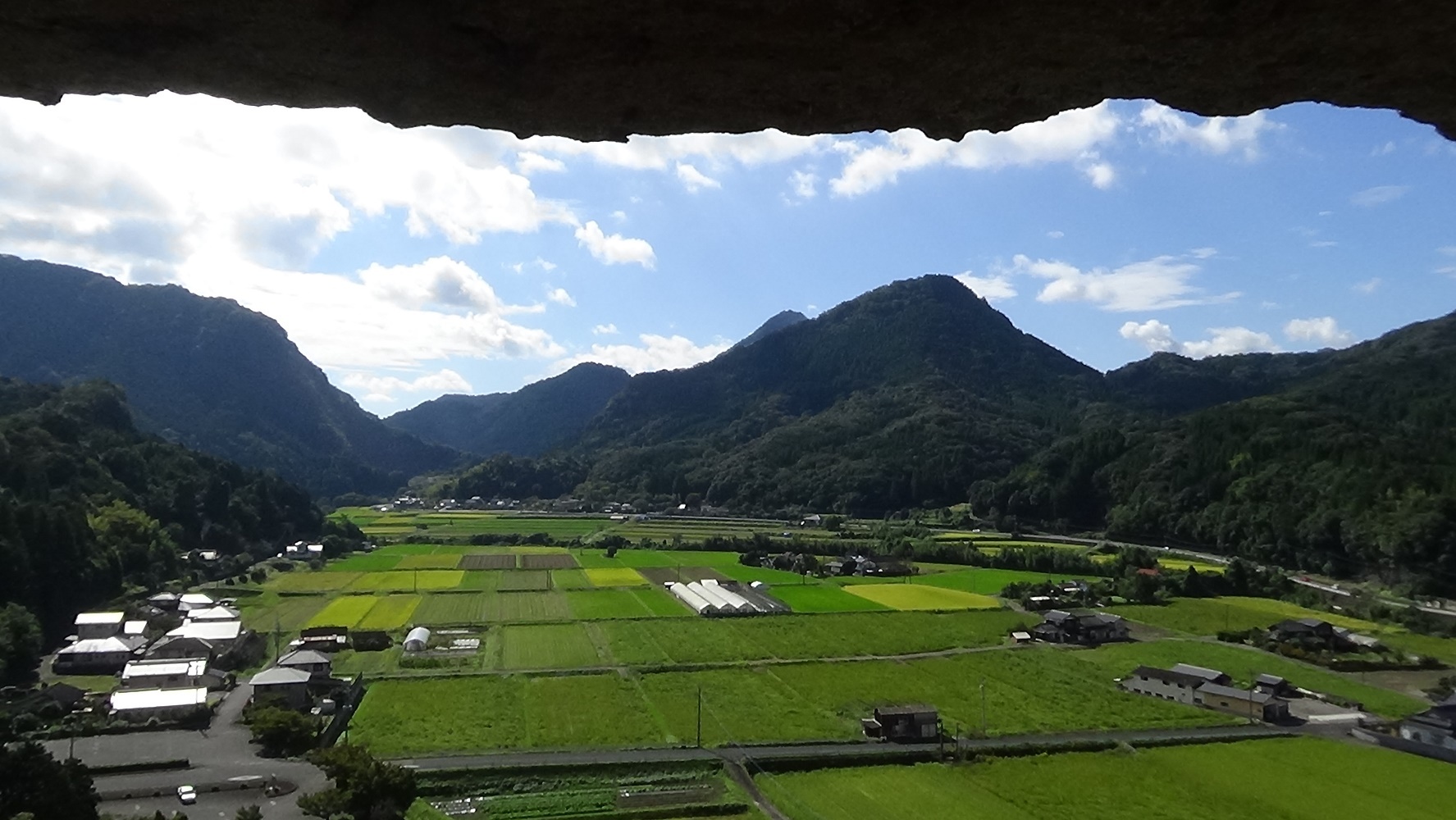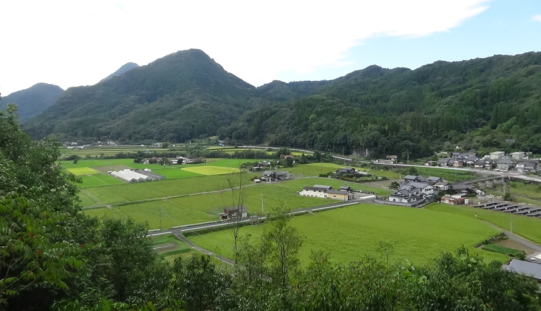 田んぼや国道が見えました。まだ緑色の景色。