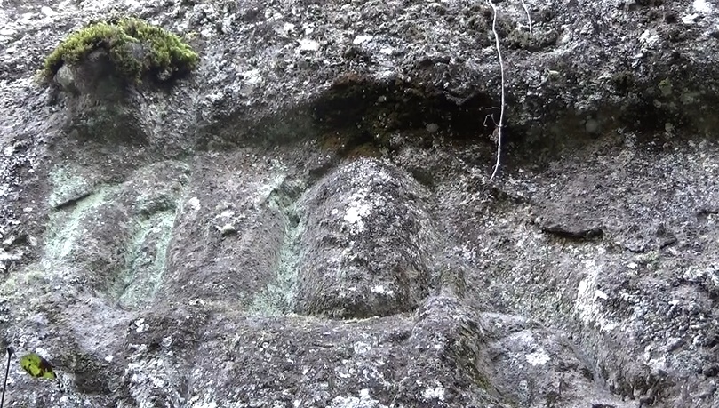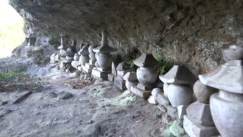 下りて岩屋の方へ。石塔が並びます。首がない石仏を拝みまし