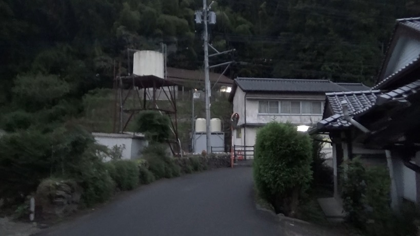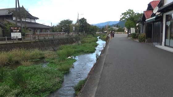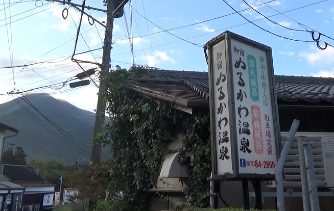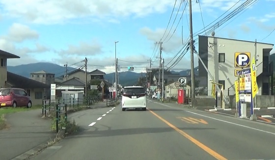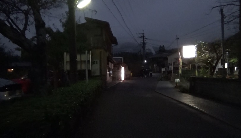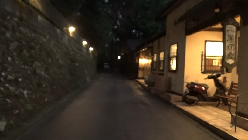 右回りします。一度車道に出ました。温泉の町です。洋灯舎の