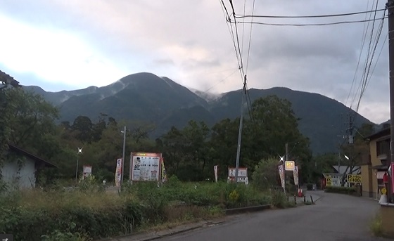 ナビにしたがって車で移動。標高を上げて北から、由布岳が大き
