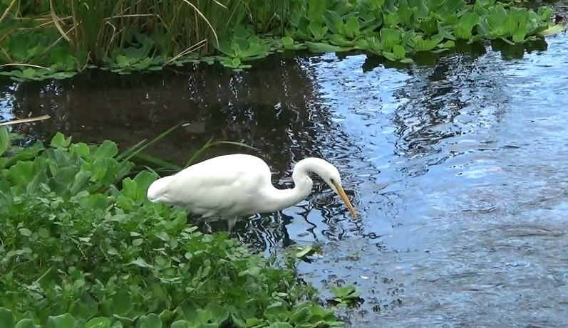まだ時間があるから大分川沿いに歩きます。サギとカモがいま