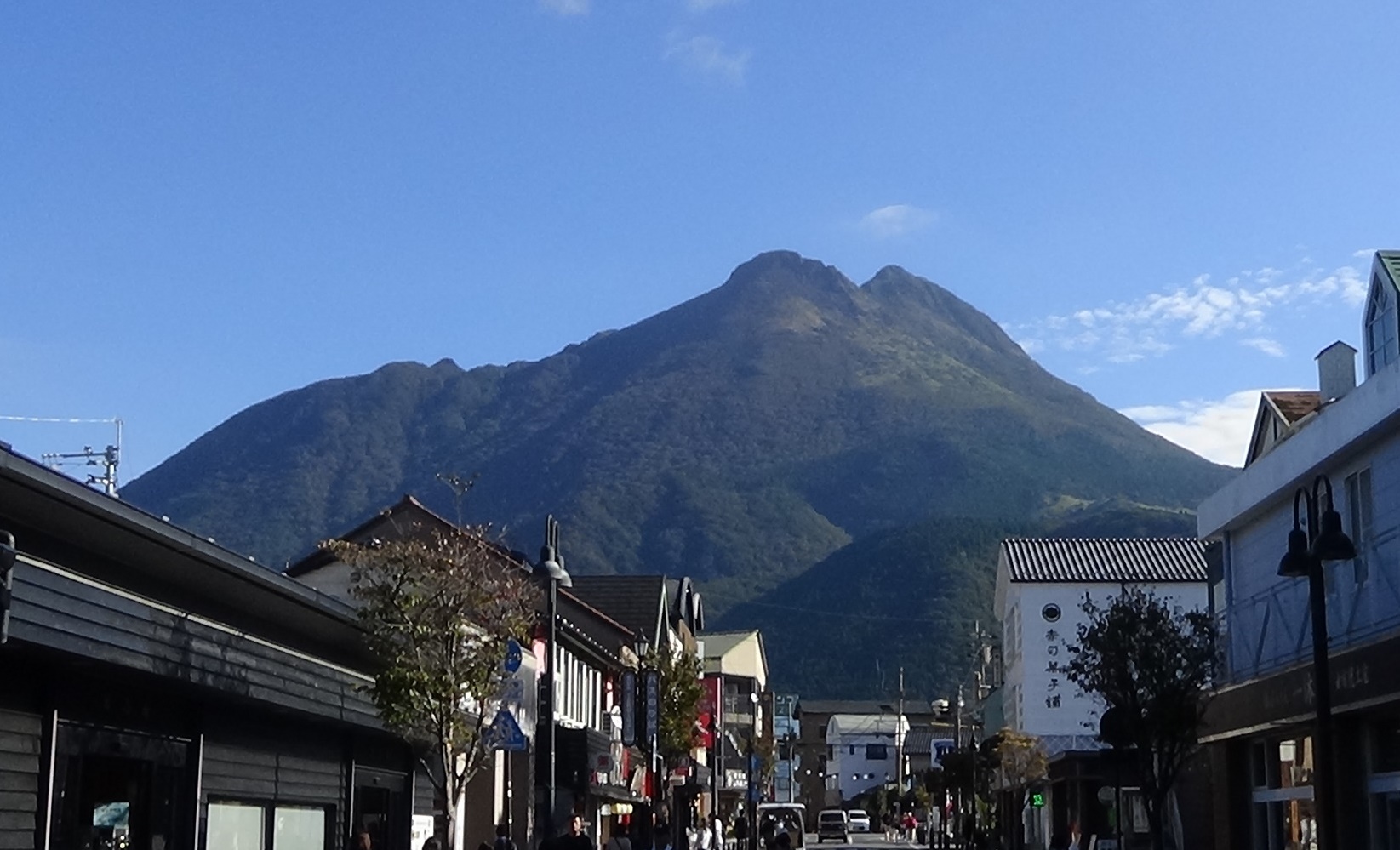 した。この辺もお店がいっぱい。振り返ると由布岳が見えました。