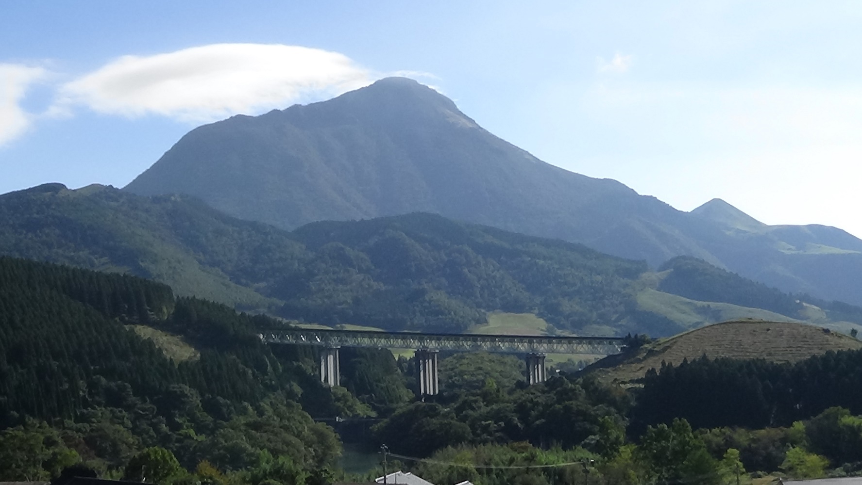 北に見えるのが由布岳かな? いやもっと高いはず。とにかく明